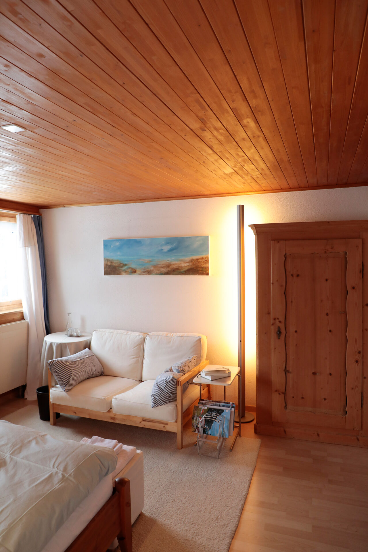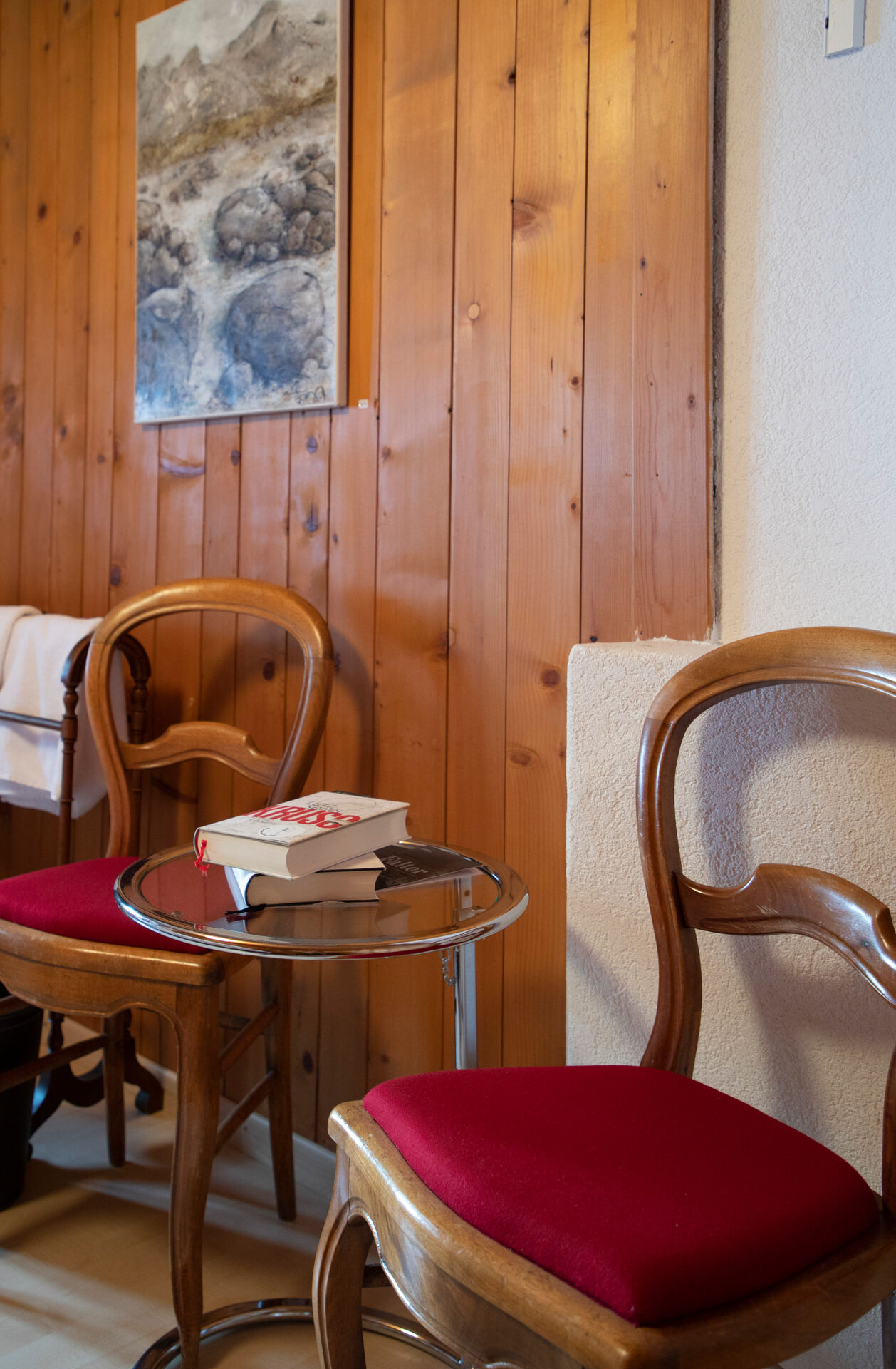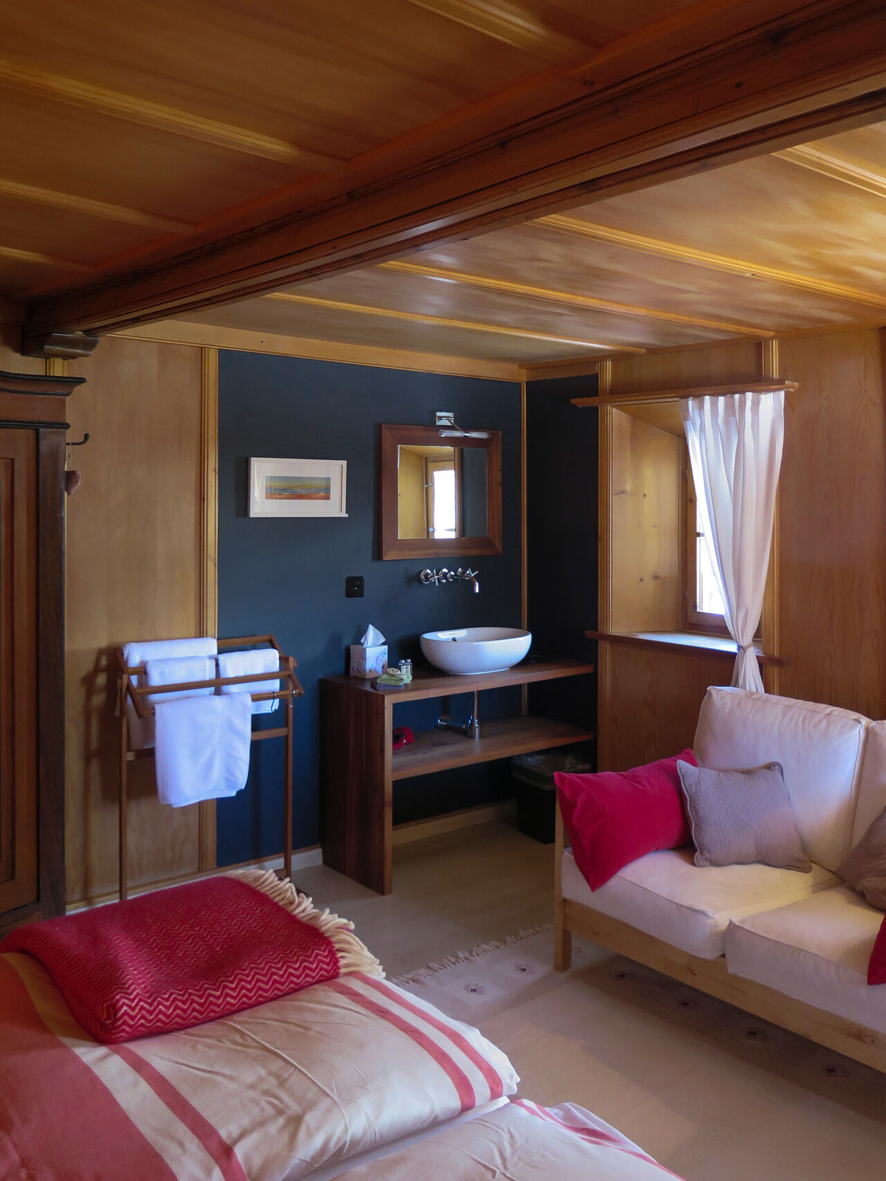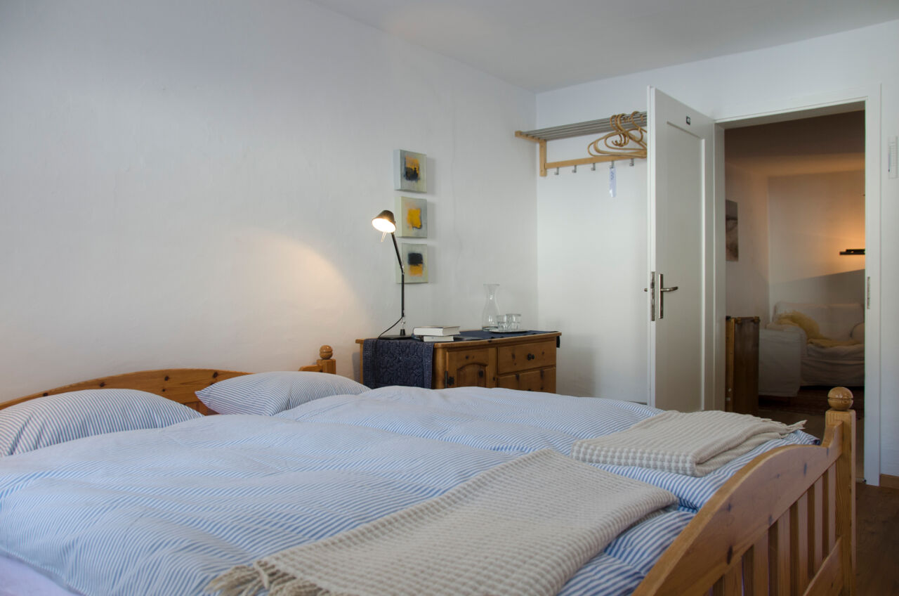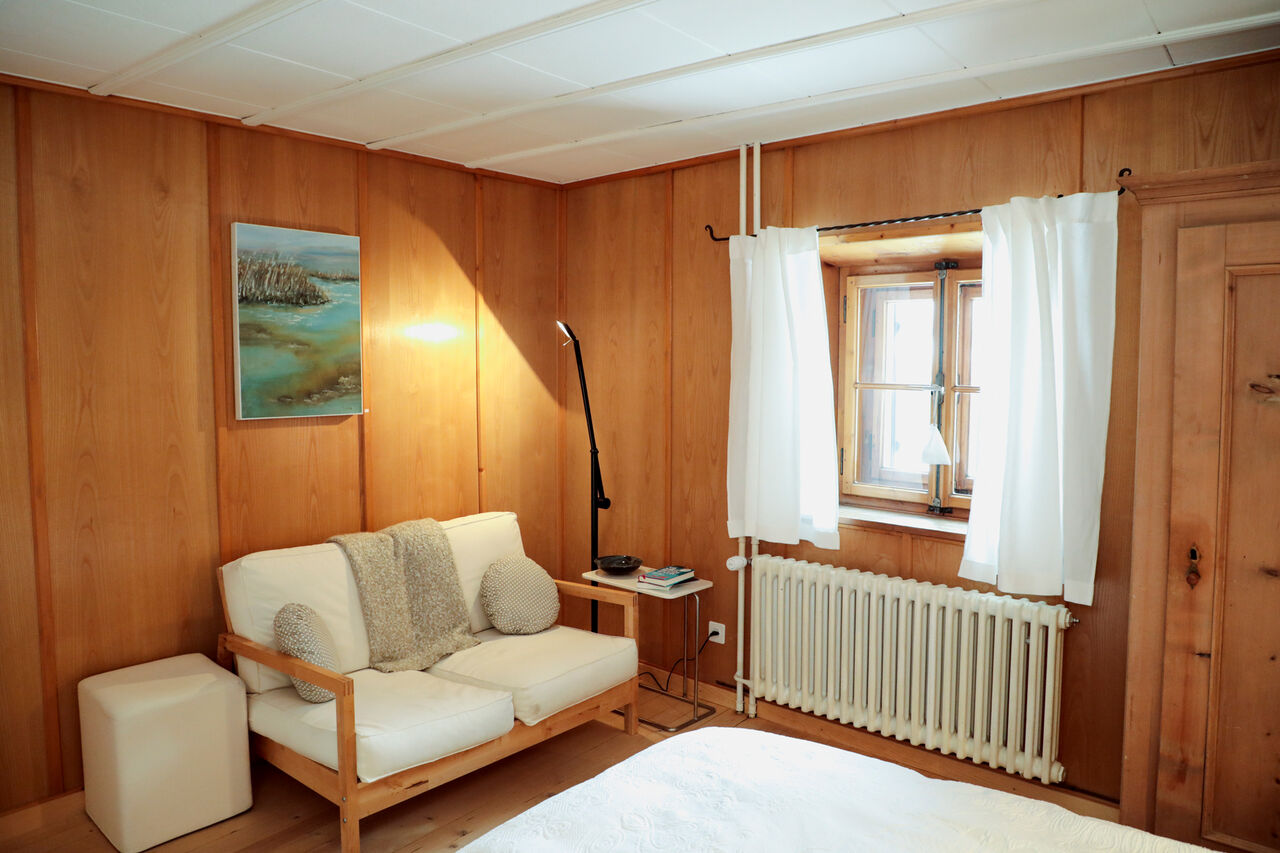 Sieben Doppelzimmer, jedes ist etwas Besonderes. Mit dem Blick für Details sind sie warm und einladend eingerichtet. Für die einen gibt es das Bad zum Teilen, für die anderen ein Bad für sich allein. Gefrühstückt wird ausgiebig in der Gaststube. Das Bücherregal ist gefüllt mit Kinderbüchern, Klassikern und Literatur aus Graubünden. Die Bilder im Gasthaus sind wechselnde Ausstellungen von unbekannten und bekannten Künstlern. Das Sternegucksofa hinterm Heustall ist für die mondsüchtigen Übernachtungsgäste ein Extrastern.